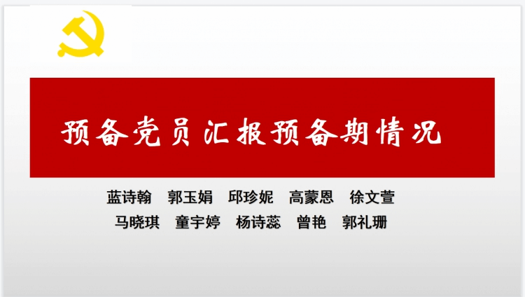 经全体正式党员投票表决,一致同意蓝诗翰、郭玉娟、邱珍妮、高蒙恩、徐文萱、马晓琪、童宇婷、杨诗蕊、曾艳、郭礼珊10名预备党员按期转正;一致同意接收张海、李雯婷、刘希玥、黎晓冬、陆淇彦5名同志为中共预备党员并公示7天,经公示无异议将报上级党委审批。