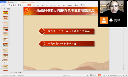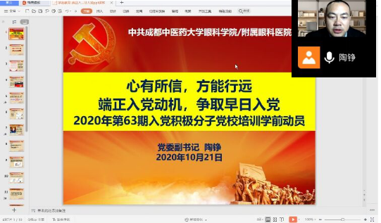 根据学校党委组织部和《beat365在线唯一官网入党积极分子进入党委党校学习培训选送规程》的相关规定,我院党委于2020年10月21日晚20:00召开党校培训前学前动员会。院党委副书记陶铮以"端正入党动机,争取早日入党"为题授党课。