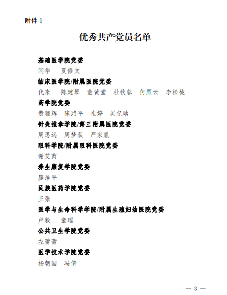 今年是中国共产党成立100周年,我院各党组织和广大党员干部深入学习贯彻习近平新时代中国特色社会主义思想,积极开展"不忘初心、牢记使命"主题教育和党史学习教育,在落实立德树人根本任务,在学校"双一流"建设和医院发展过程中做出突出成绩。根据《中共beat365在线唯一官网委员会关于做好学校"两优一先"推荐工作的通知》(成中医组织〔2021〕24号)具体安排,经过院党委推荐、择优遴选,学校党委集中评审、严格考察,学校党委常委会审批,我院谢艾芮同志名获评学校优秀共产党员,临床第二党支部获评学校先进基层党组织。