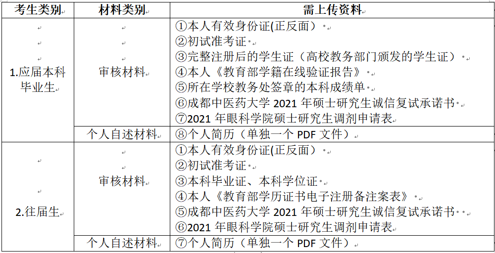 考生应当在2021年4月8日18:00-9日10:00将本人材料通过"学信网研究生招生远程面试系统"进行上传,上传资料含审核材料和个人简历。其中审核材料按序号顺序统一扫描成1个PDF文件,个人简历1个PDF文件。