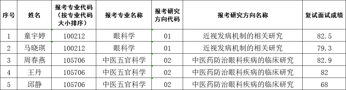beat365在线唯一官网眼科学院2022年推免生拟录取名单(第一批)