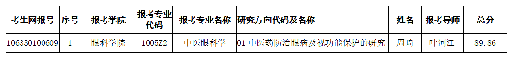 beat365在线唯一官网眼科学院2020年攻读申请考核制博士学位研究生拟录取名单