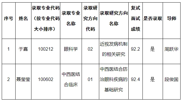 beat365在线唯一官网眼科学院2019年推免生拟录取名单(第一批)