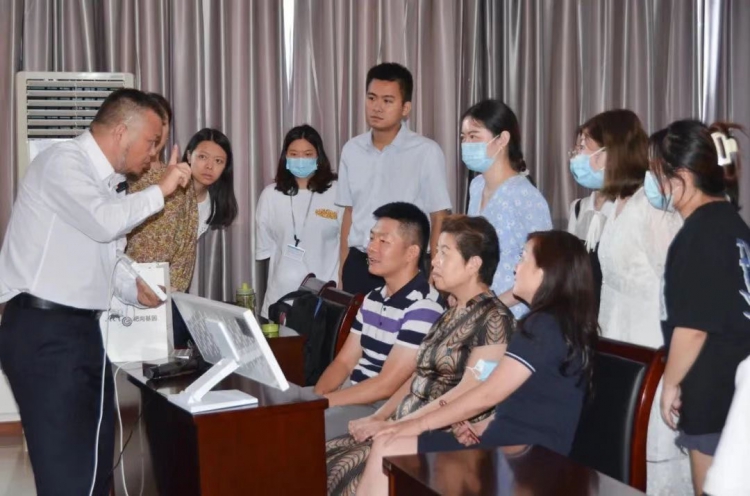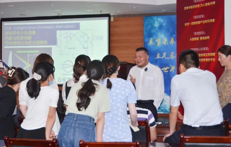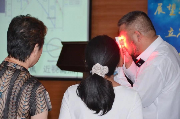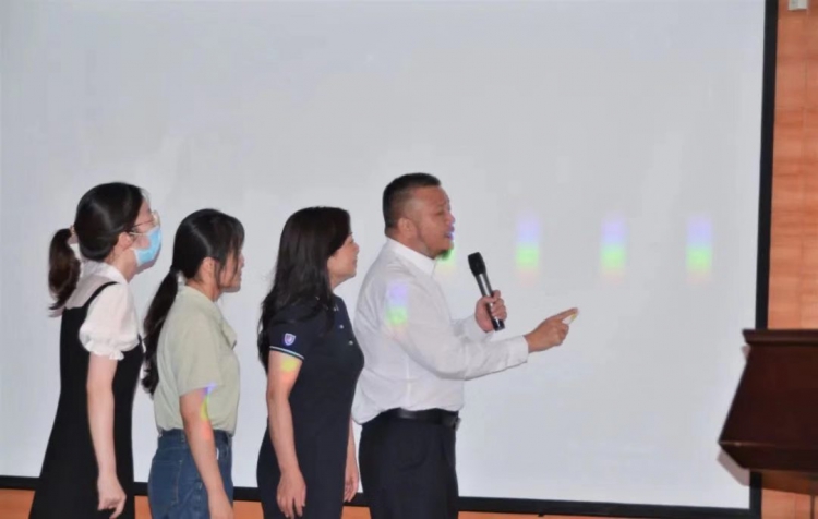 乌林奇博士利用形式多样的课堂互动,带领师生体验光对视力的影响以及光治疗仪对近视的改善效果,并结合体验者的切身感受,讲解光对近视防控的实际效用。