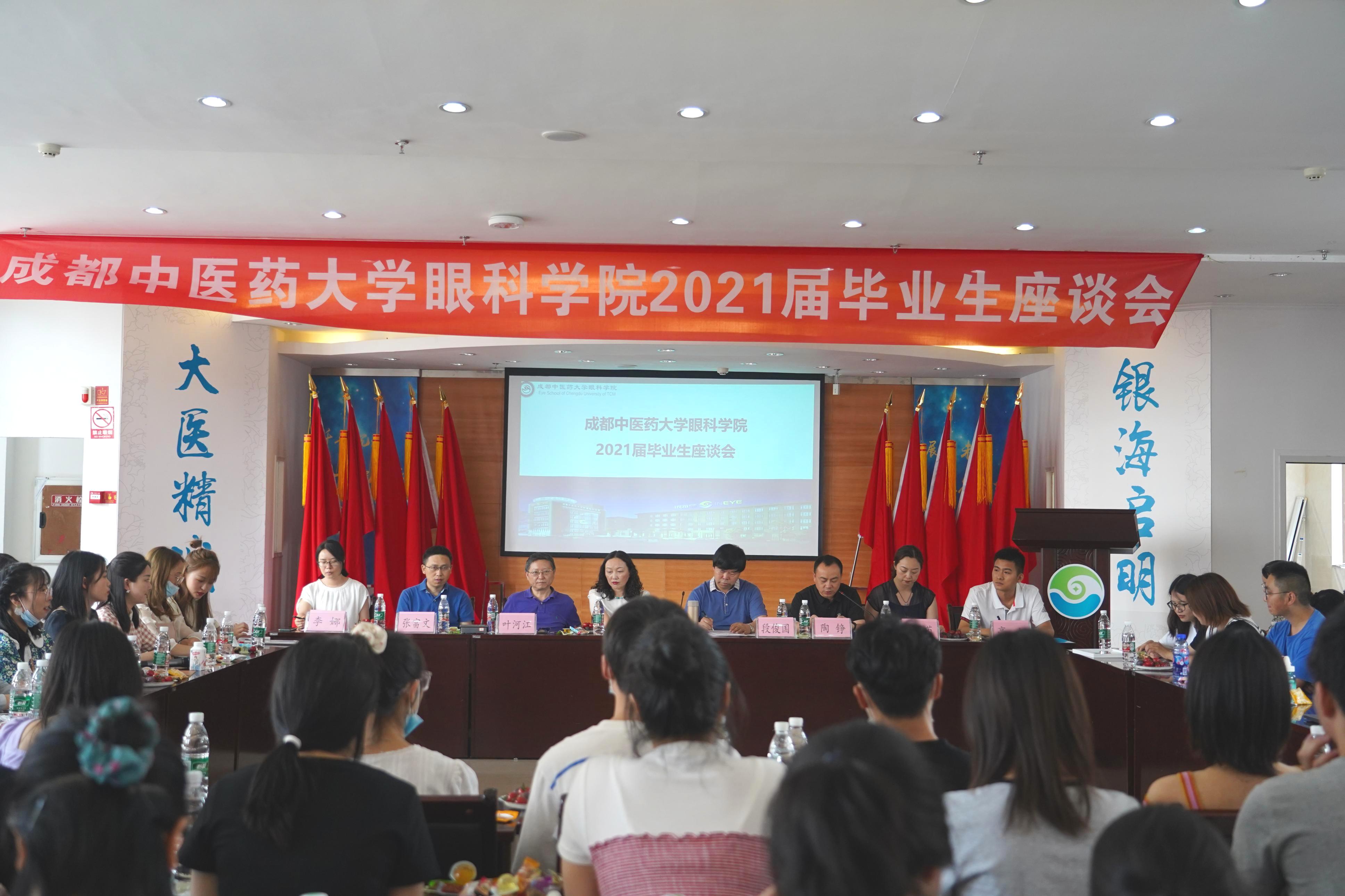 6月23日下午,我院2021届毕业生座谈会在成都中大银海眼科医院学术报告厅召开。党委书记/院长段俊国、副院长袁晓辉、教师代表、毕业班辅导员、全体本硕博毕业生参加座谈会。座谈会由院党委副书记陶铮主持。