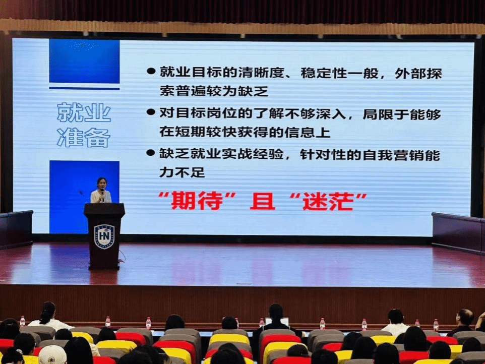 首先,学生工作部(处)就业工作负责人张婷介绍了2024届毕业生就业政策、就业形势以及分析我校近三年毕业生就业整体情况和国际传播学院近三年毕业生就业情况。