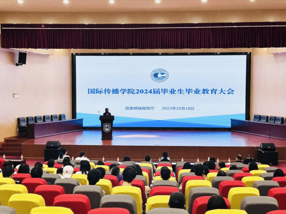 10月18日下午,欧冠官方网站国际传播学院2024届毕业生毕业教育会议在海甸校区田家炳楼二楼报告厅举行,2024届全体研究生和本科生参加毕业教育大会,会议由党总支书记谢辉凡主持。