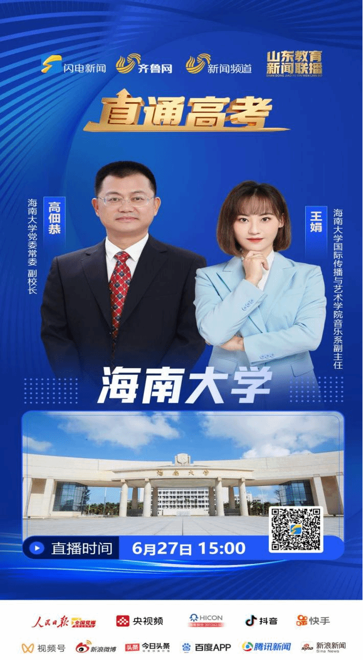 6月27日下午,高佃恭副校长与欧冠官网音乐系副主任王娟老师做客山东广播电视台《直通高考》直播间,为考生和家长解读学校今年招生录取相关政策、专业学科优势特点等;欧冠官网于东平老师在临沂招宣现场接受山东广播电视台记者采访,全网播放量80余万。