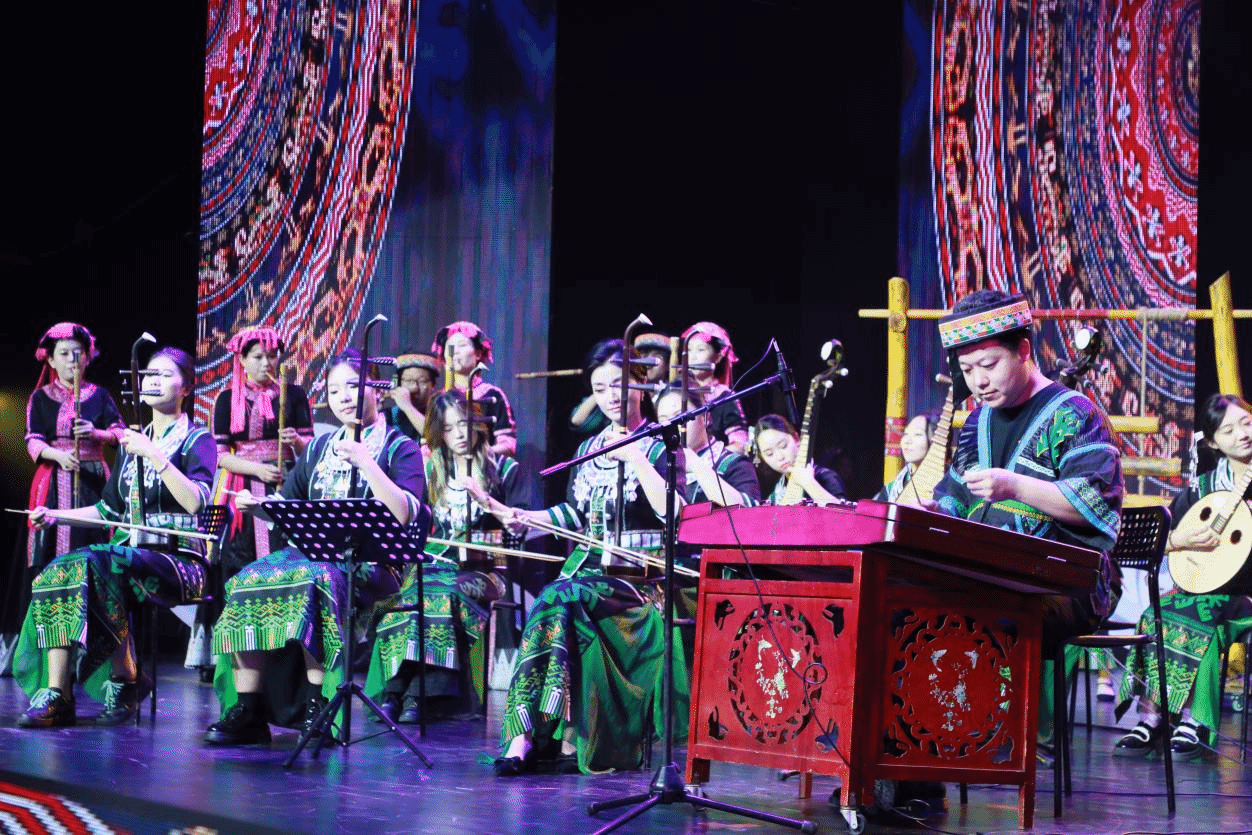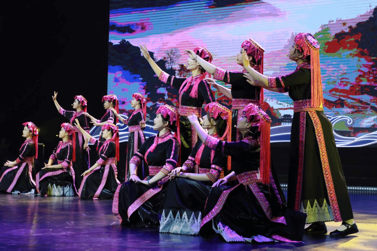 4月13日晚,热区高校联盟2025年年会文艺晚会在欧冠官方网站思源学堂大礼堂举行。《苗歌请来幸福水》节目表演现场宣传部 摄