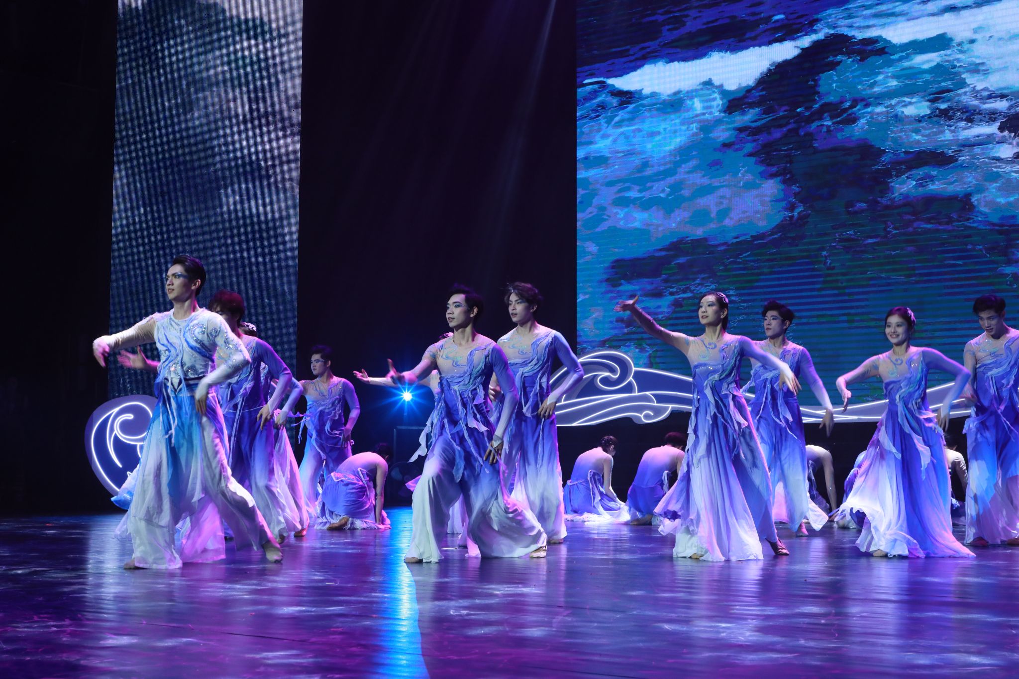 4月13日晚,热区高校联盟2025年年会文艺晚会在欧冠官方网站思源学堂大礼堂举行。这是《愿蓝色重回海洋》节目表演现场。宣传部 摄