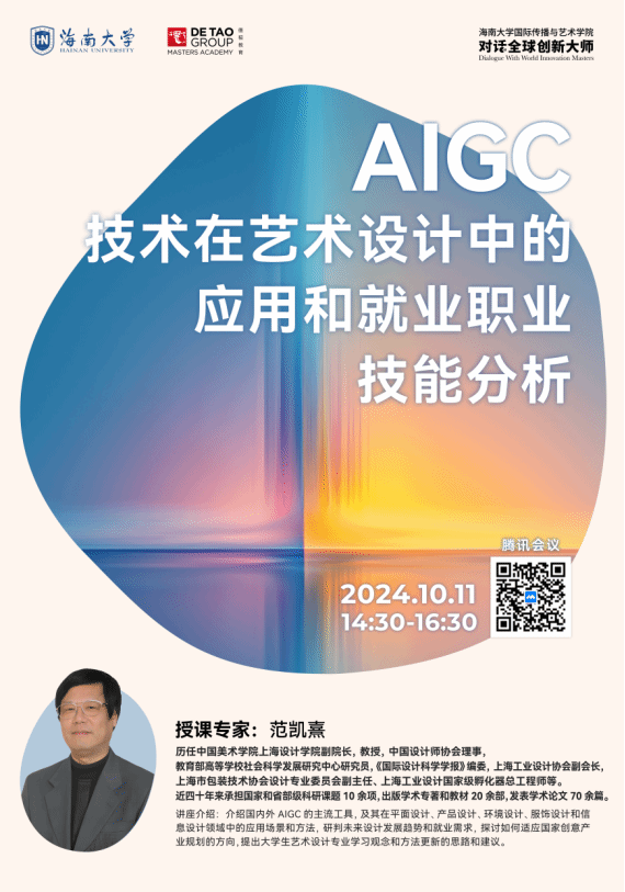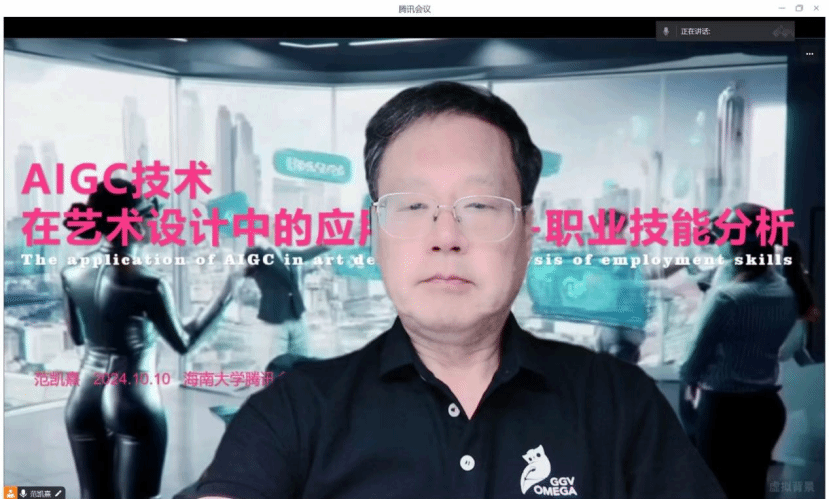 10月11日14:30,欧冠官方网站2024“对话全球创新大师讲座”《AIGC技术在艺术设计中的应用和就业职业技能分析》在线上举行,由中国美术学院范凯熹教授主讲,设计系专业教师李珂博士担任学术主持,线上线下共100名左右师生同时参与。