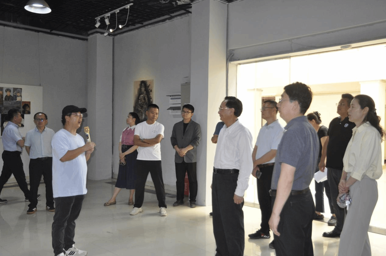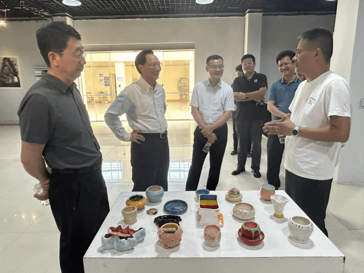 参观过程中,符宣国书记一行与师生们展开亲切交流,对展览的学术价值与教学创新成果给予了肯定。他指出,学校是教书育人、立德树人的地方,在开展美育教育的过程中应引导学生多去关注海南地域文化元素,向大自然汲取灵感,以培养其积极乐观、阳光向上的精神风貌。同时,他还强调要关注创作主题的思想性,并兼顾艺术作品的应用场景和市场走向,以服务社会为目标,培养更多具有国际化视野和创新能力的艺术人才。