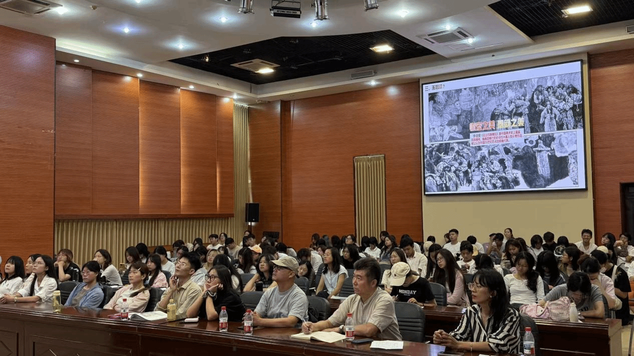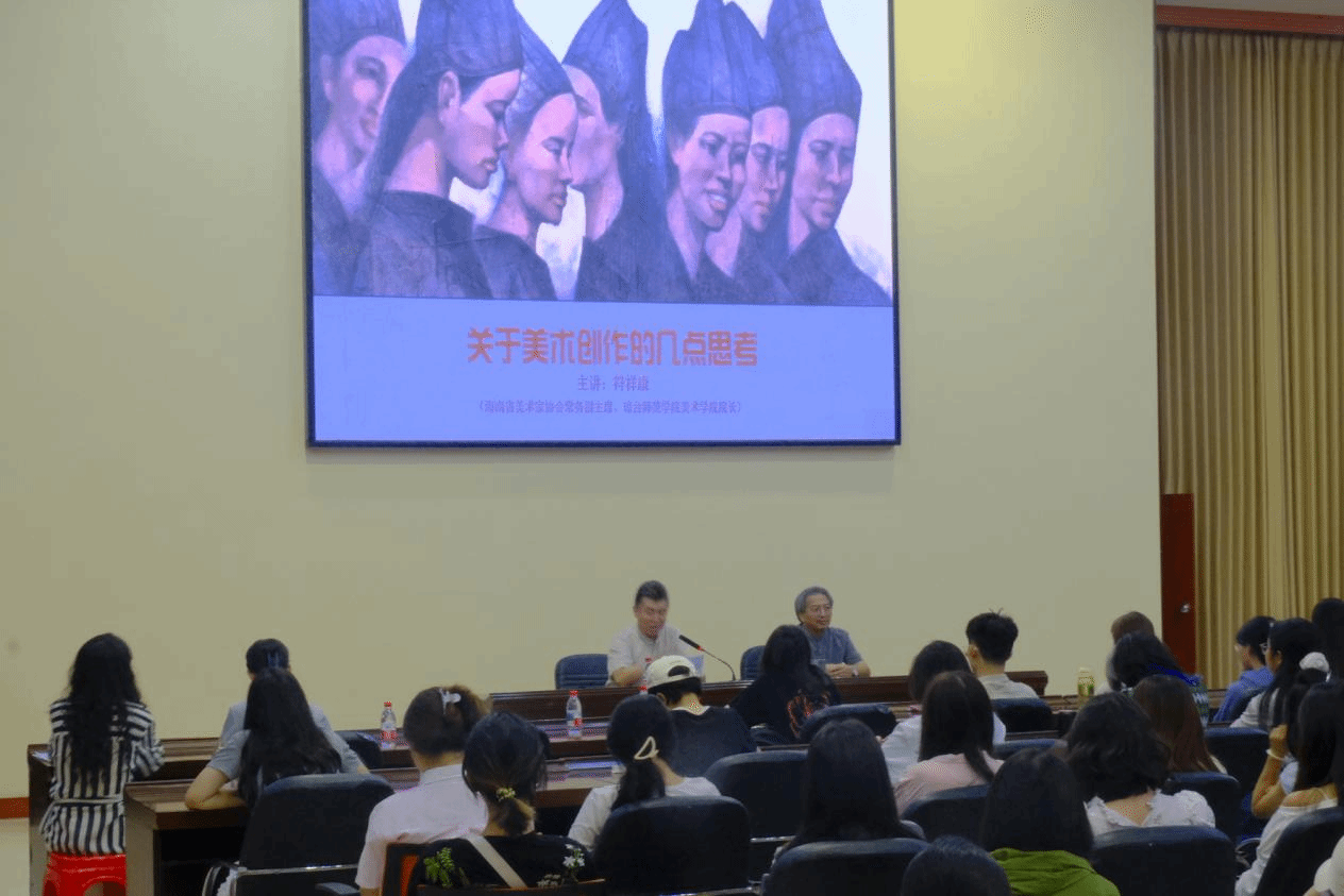 符祥康教授以“恢弘的历史视野”与“深刻的人文关怀”为核心视角,围绕“画什么、怎么画、画如何”系统阐述了创作主题选择、表现手法与价值传达的关系,并结合海南自贸港建设背景,探讨了美术创作如何通过关注生活与自然,打破学科界限,有效传递思想观念,并鼓励同学们从时代背景、文化记忆与地域特色中汲取灵感,运用恰当的技法语言表达情感与思考。