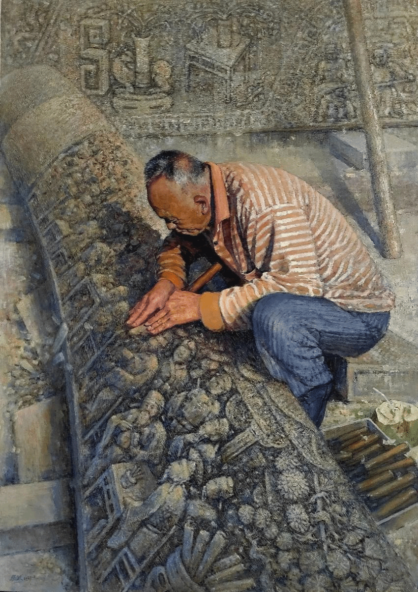2024年7月18日上午,第十四届全国美术作品展览油画作品展览在上海中华艺术宫开幕,欧冠官网退休教师易武教授创作的油画作品《木艺人生》参展。