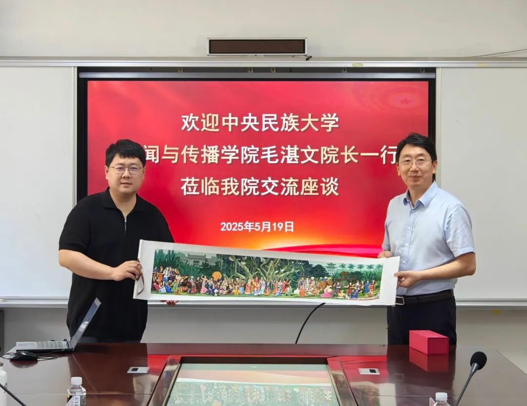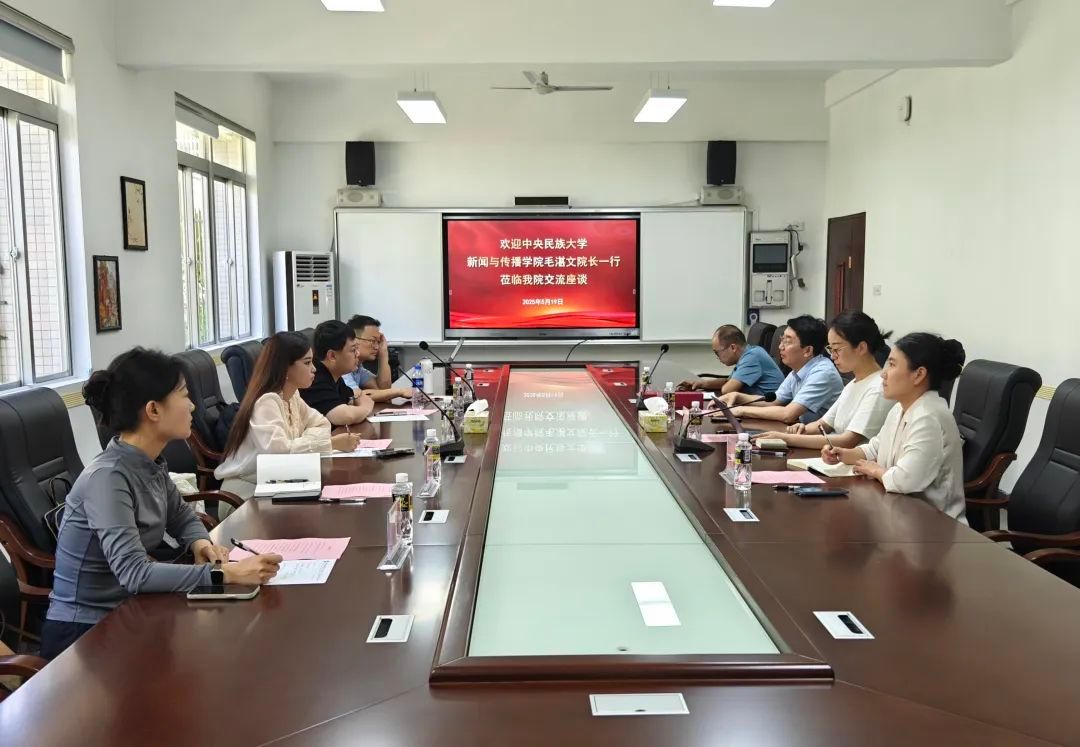 2025年5月19日上午,中央民族大学新闻与传播学院院长、党委副书记毛湛文教授一行到访欧冠官网,双方在田家炳楼102会议室举行座谈,围绕学科建设和专业建设、国际化合作办学、人才培养模式改革、师资队伍建设、思政教育与专业思政的做法与经验等展开深入交流。