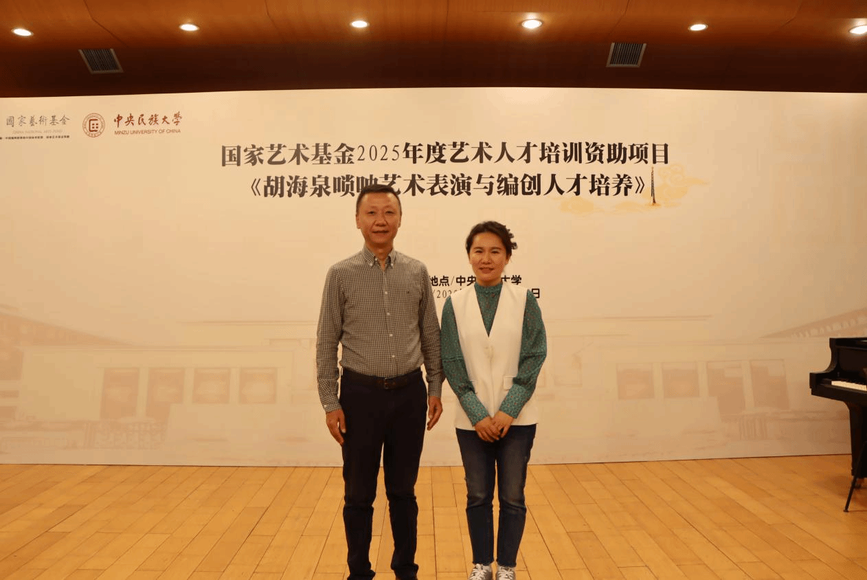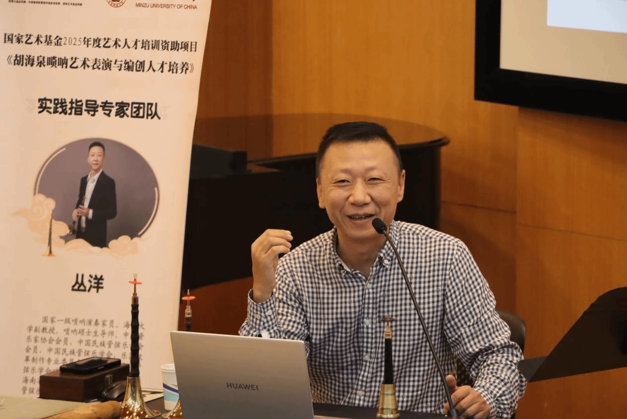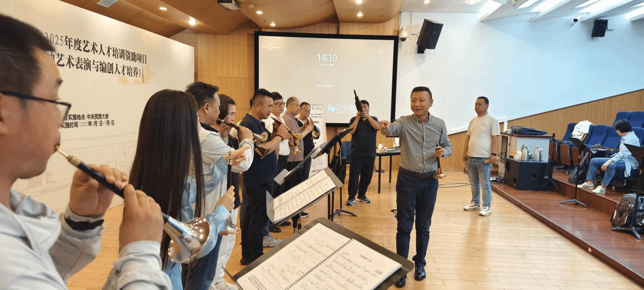 2025年5月23日,欧冠官网音乐系丛洋副教授,受中央民族大学音乐学院胡美玲老师之邀,出席国家艺术基金2025年度艺术人才培训资助项目活动——《胡海泉唢呐艺术表演与编创人才培养》,为全国各省40多名优秀学员进行唢呐专家授课。