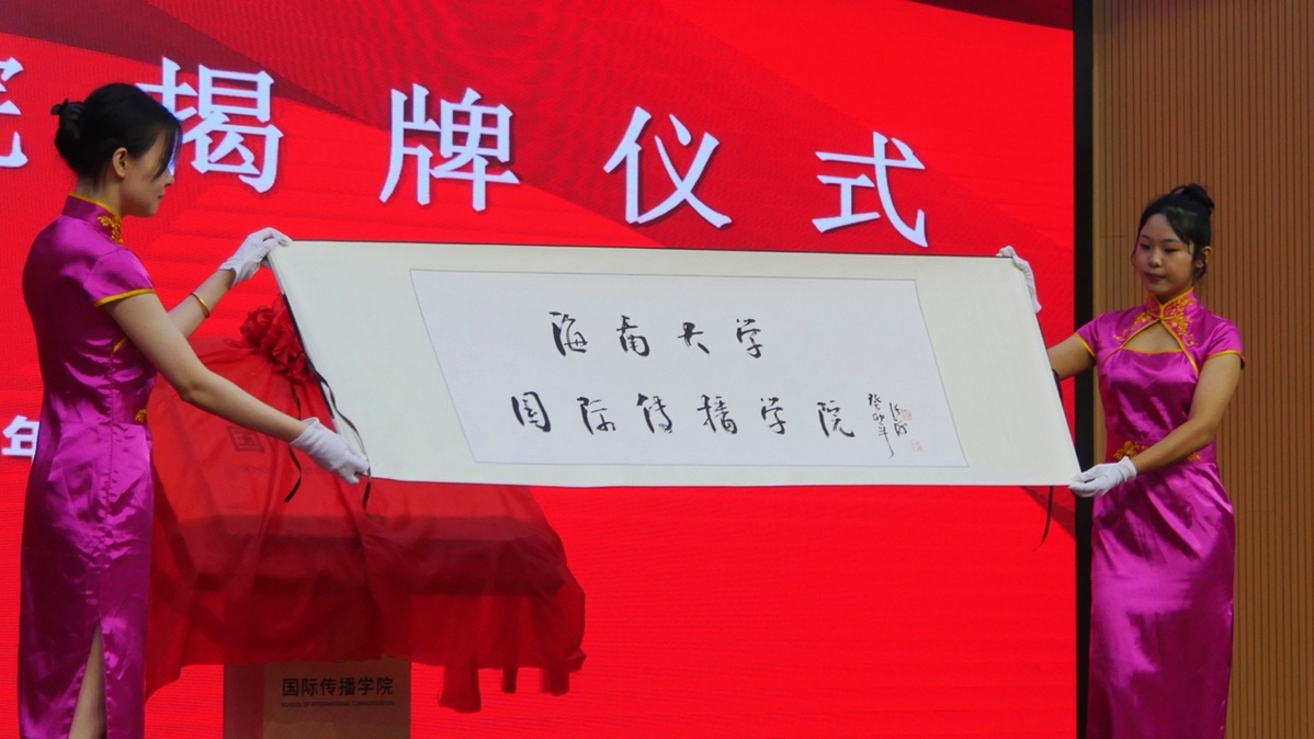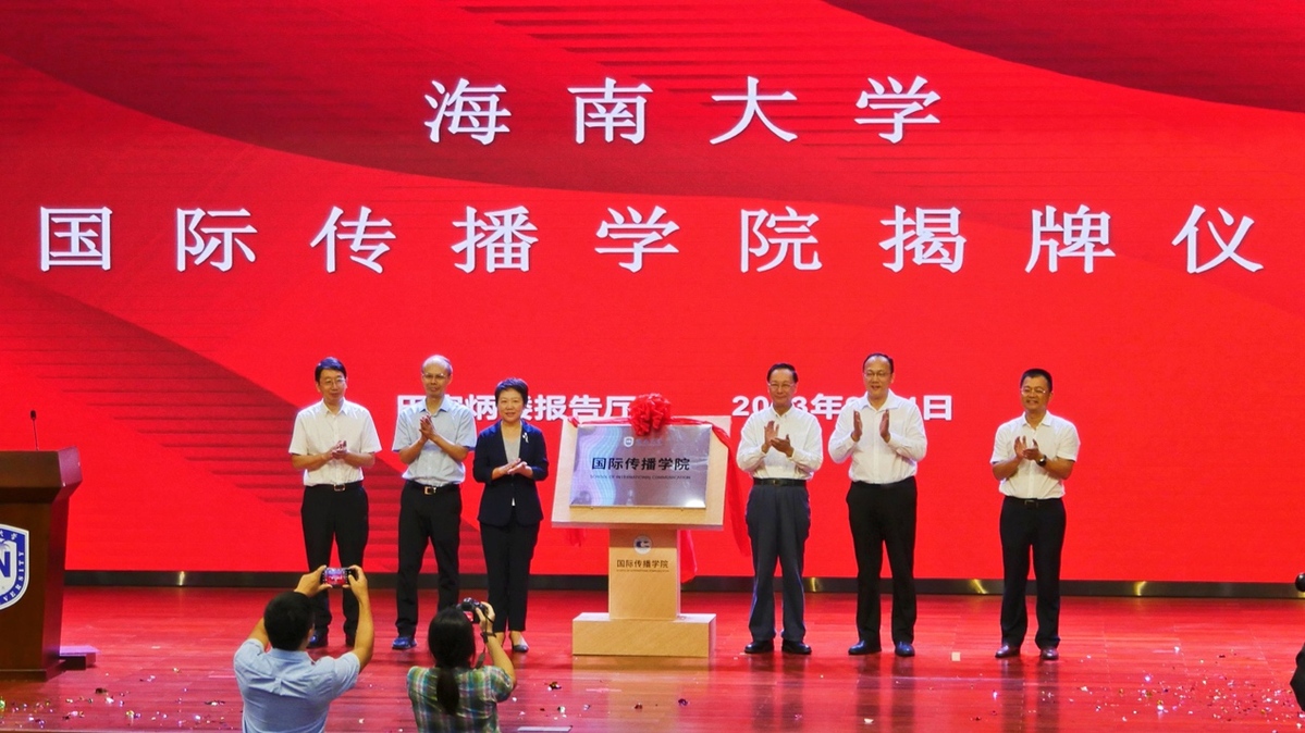 海南省委宣传部副部长蒋建民,海南省教育厅党委书记曹献坤,新华社海南分社社长陈良杰,欧冠官方网站党委书记符宣国,党委常委和校领导高佃恭、韩淑梅、谭勇出席,国际传播学院全体师生参加揭牌仪式。