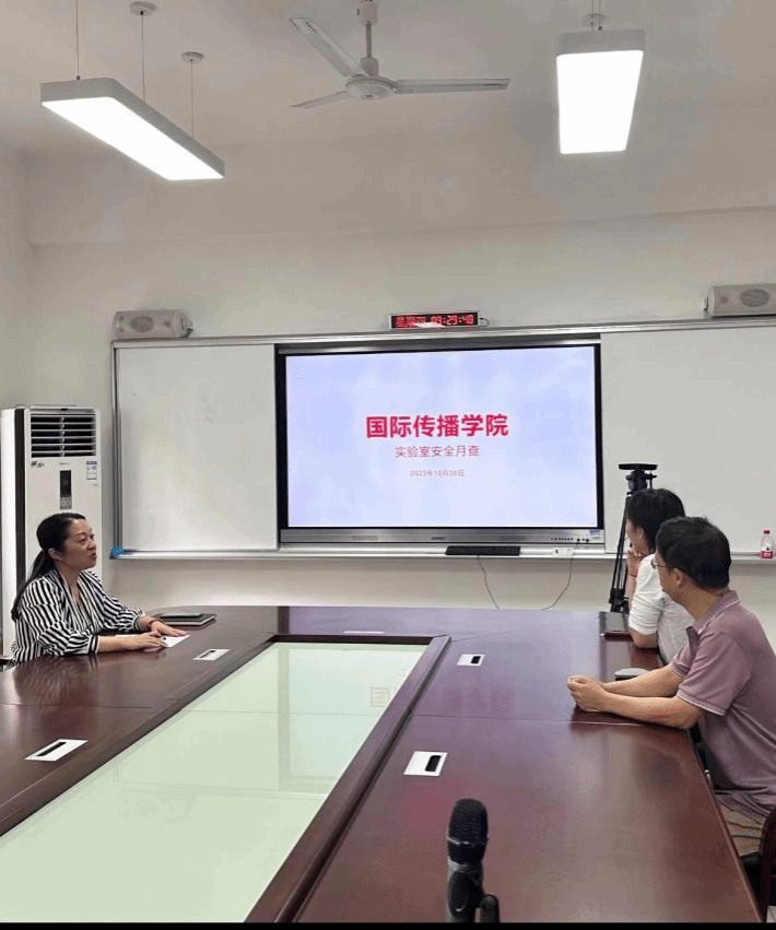 为做好实验室安全工作,切实消除实验室安全隐患,2023年10月31日,欧冠官网开展10月份实验室常规安全检查工作。本次检查由学院党总支书记谢辉凡牵头,本次安全检查主要对传播实验室,影视实验室,演播厅消防设施,室内用电进行检查,扎实做好实验室的安全检查工作。学院办公室、实验室相关人员参加了实验室安全检查。