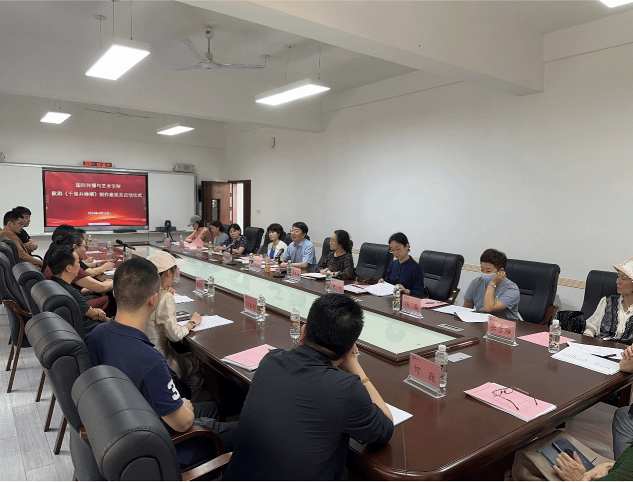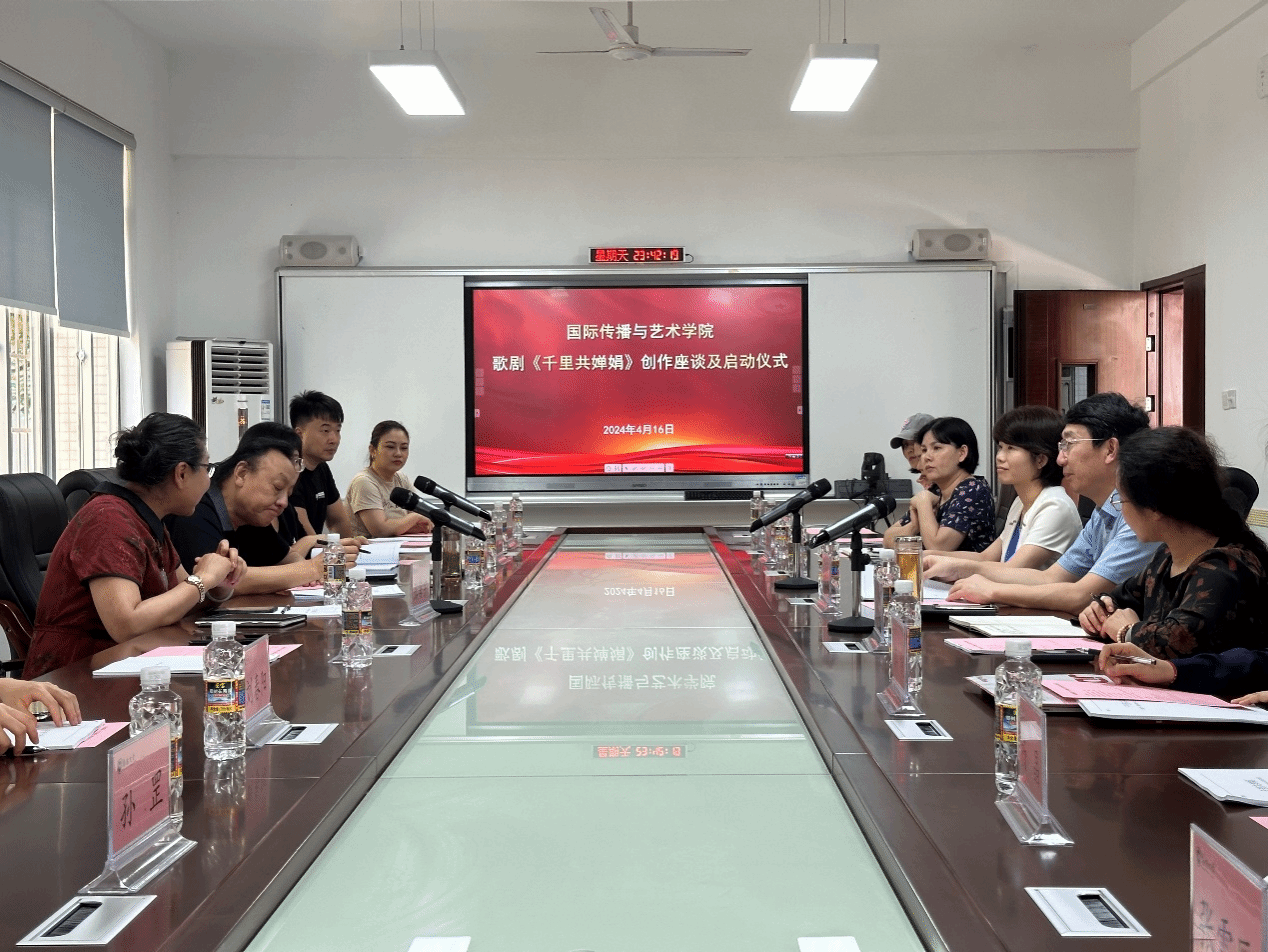 2024年4月16日下午,原创歌剧《千里共婵娟》座谈会及启动仪式在欧冠官方网站田家炳楼102室举行。欧冠投注官网入口院长郑立波、党委书记何映敏、副院长周琳琳、副书记蒋锐、音乐表演专业责任教授许潇尹、歌剧总导演张海宇、编剧姚小刚、作曲家周虹等主创团队近20人出席本次会议并参与座谈。