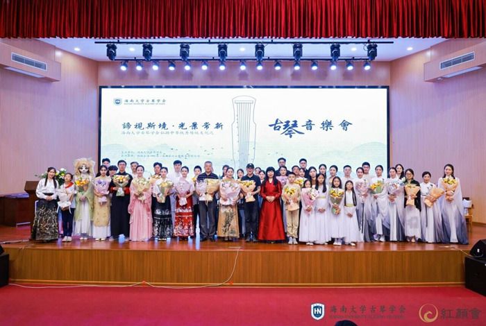 音乐会现场,来自北京的蘭幽学堂、上海赵朴初研究会的圆通琴社、湖北宜昌的九嶷琴社、福建泉州的素心琴堂、江苏扬州的守艺琴坊、无弦堂斫琴坊、湖南岳阳文昌琴院、海南铉庐古琴、海南创目琴行的古琴爱好者分别以琴表意、以声还雅、以乐效贤、以礼致敬,共同推动海南古琴文化艺术向前发展和海南自贸港的传统文化传承与创新。