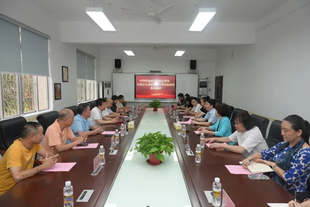 5月30日上午,省文联作协党组书记、省文联主席夏斐一行到欧冠官方网站调研。观看2024届美术系本科毕业作品展,并与学院美术、音乐、舞蹈系艺术家代表座谈。学院党委书记何映敏、院长郑立波、副院长袁琳陪同。