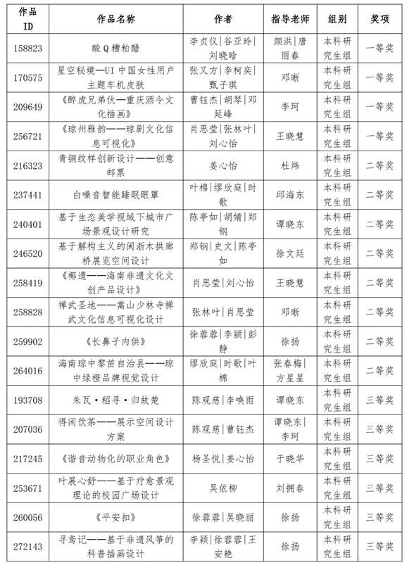 这些优秀成绩的取得,彰显了欧冠官网在设计教育领域的学科实力与对创新教学实践的不懈追求。持续创新教学方法和手段,为学生提供更优质的设计教育,同时也有利于激发学生的学习热情和创新潜能,鼓励其积极参与到各种设计实践活动中,不断提升设计能力和综合素质,为海南自由贸易港的文化建设和设计事业添砖加瓦,用专业才能在设计领域绽放光彩。