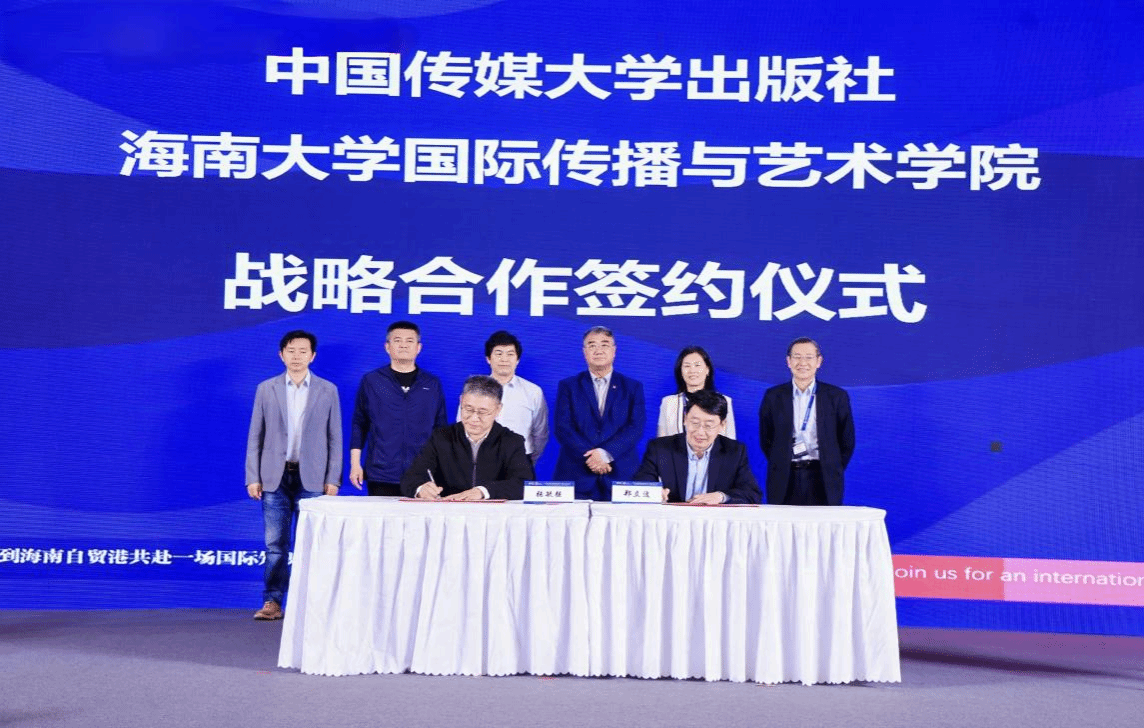 会上,欧冠官网与中国传媒大学出版社签订战略合作协议,双方将充分发挥各自业务优势,实现资源共享、优势互补,建立全面、深入的战略合作伙伴关系。与此同时,双方合作的海南省国际传播与传媒教育史科文献数字化工程正式启动,旨在合力赋能自贸港国际传播研究实践与海南传媒教育的发展创新。
