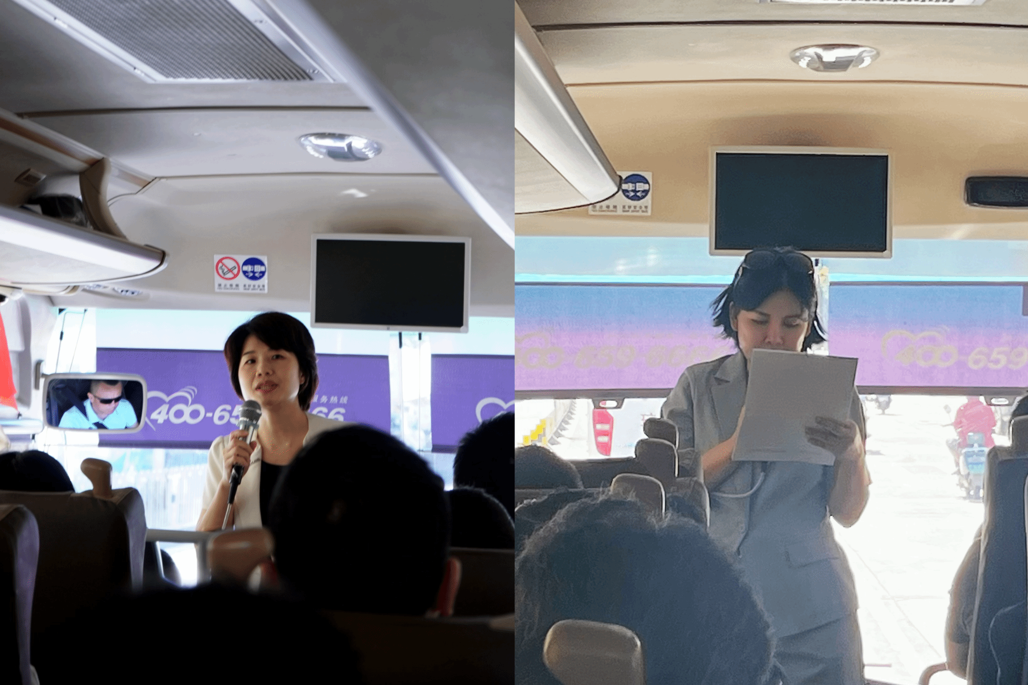 在车上,何映敏书记先简略介绍了王海萍烈士和海瑞的生平事迹,并向全体党员传达了《欧冠官方网站2024年二级党委(党总支)党建工作任务书》的文件精神。纪检委员许潇尹也给大家做了警示教育。