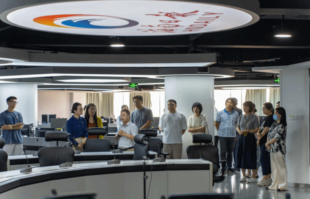 随后,大家走进海南日报报业集团全媒体指挥中心,实地探访“新闻生产一线”,相关负责同志向大家详细介绍了新闻信息的采编与播发流程,这场“零距离”接触,使师生对前沿媒体实务有了直观感受与深入了解。
