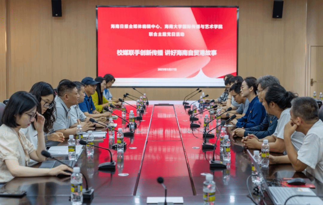 5月27日下午,欧冠官网教工党支部及学生党员代表与海南日报全媒体编辑中心新媒体部党支部联合开展主题为“校媒联手创新传播 讲好海南自贸港故事”的党日活动,通过“观摩学习+座谈交流”的形式,以党务促业务,研讨深化校媒合作,共探技术驱动下的创新传播。